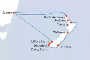 Die Welt „Down Under“ umfaßt mehr als nur Koalas und Kängurus. Es ist eine atemberaubende Mischung aus moderner Architektur, packenden Kulturschätzen der Aborigines und der Maori, sowie faszinierender Natur. Erkunden Sie Berge, Wüsten, Urwälder oder aktive Vulkane. Tauchen Sie ein in die magische Unterwasserwelt des Great Barrier Reefs. Auch Shopping in modernen Metropolen ist ein fantastisches Erlebnis, bevor Sie sich auf einer Liege auf dem Deck ausstrecken und die Sonne über der Skyline von Sydney untergehen sehen.
